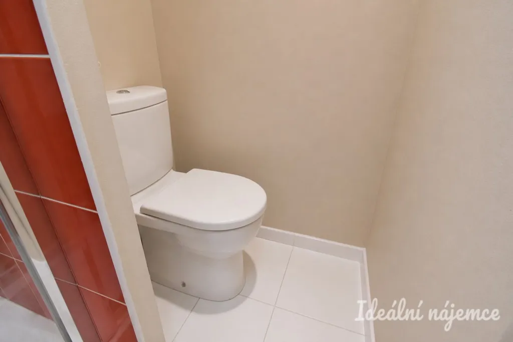 Koupelna disponuje sprchovým koutem, umyvadlem a toaletou.