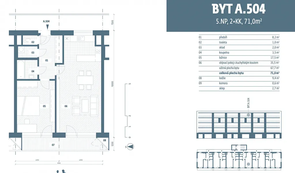 V exkluzivním zastoupení nabízíme k prodeji prostorný byt 2+kk o celkové ploše 71 m², který se nachází v 5. (posledním) patře novostavby s výtahem v klidné části Velvar, ulice Dřevařská.