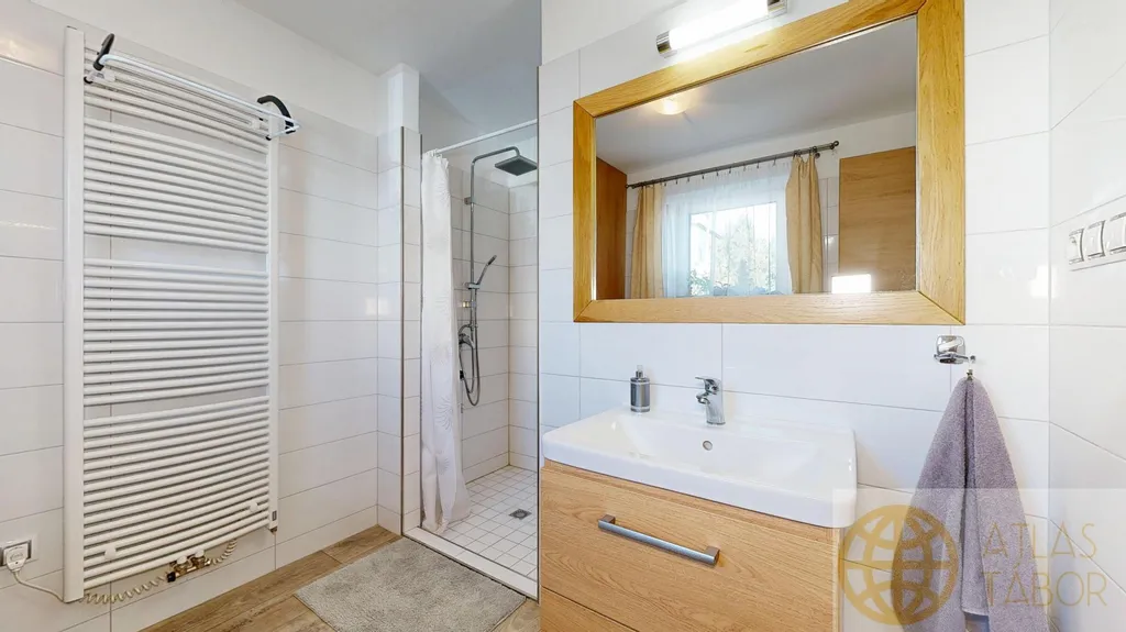 Ve 2. nadzemním podlaží jsou tři samostatné pokoje a velká koupelna s WC, vanou i sprchovým koutem ideální řešení pro větší rodinu.