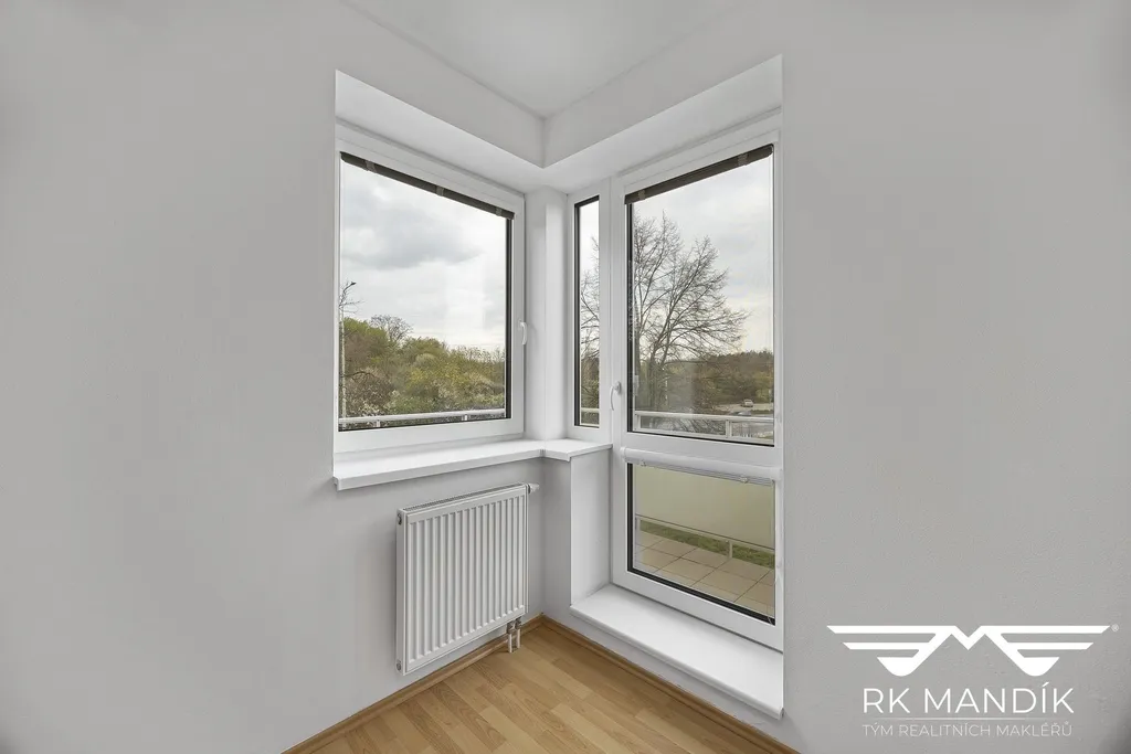 Byt má zajímavé a dobře promyšlené dispoziční řešení. Součástí prostorného obývacího pokoje (28,35 m²) je kuchyňský kout a vstup na balkon (7,36 m²). Kuchyně je vybavena varnou deskou, digestoří a elektrickou troubou. Koupelna s vanou a toaletou (4,80 m²) je vybavena pračkou, vstupní chodba a předsíň (4,62 m²) pak nabízí prostor pro botník či věšák. V obývacím pokoji je položena plovoucí podlaha, v kuchyňském koutu, chodbě a koupelně je keramická dlažba. Byt je osazen takřka novými okny s trojskly a je orientován severovýchodně.