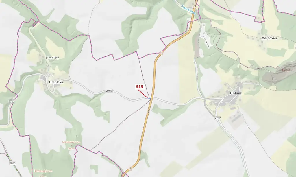 Ostatní plocha o výměře 356 m2, parcelní číslo 913, podíl 1/1, katastrální území Drchlava, obec Chlum, obec s rozšířenou působností Česká Lípa, okres Česká Lípa, Liberecký kraj.