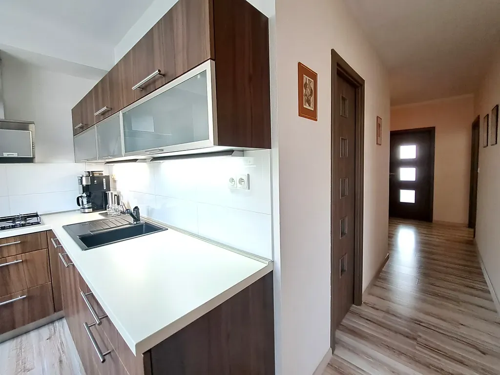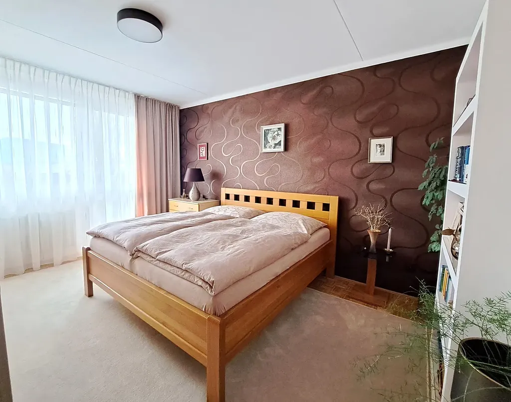 Byt má vytápěnou plochu 73 m2 + lodžie 4 m2 + sklep 2 m2. Dispoziční řešení bytu: prostorná vstupní chodba - vestavěná skříň, kuchyň propojená s obývacím pokojem, pokoj, ložnice, lodžie s příjemným posezením, koupelna (vana, umyvadlo, pračka), samostatné WC - Geberit s bidetovou sprškou a umyvadlem. K bytu náleží sklep. Velká výhoda tohoto bytu je, že pokoje jsou neprůchozí. V bytě proběhla celková rekonstrukce, včetně veškerých rozvodů, elektřina v mědi, nová okna, kuchyň - Sýkora, nová koupelna, WC, na zakázku byly zhotoveny také dveře s obložkami i podlahy.