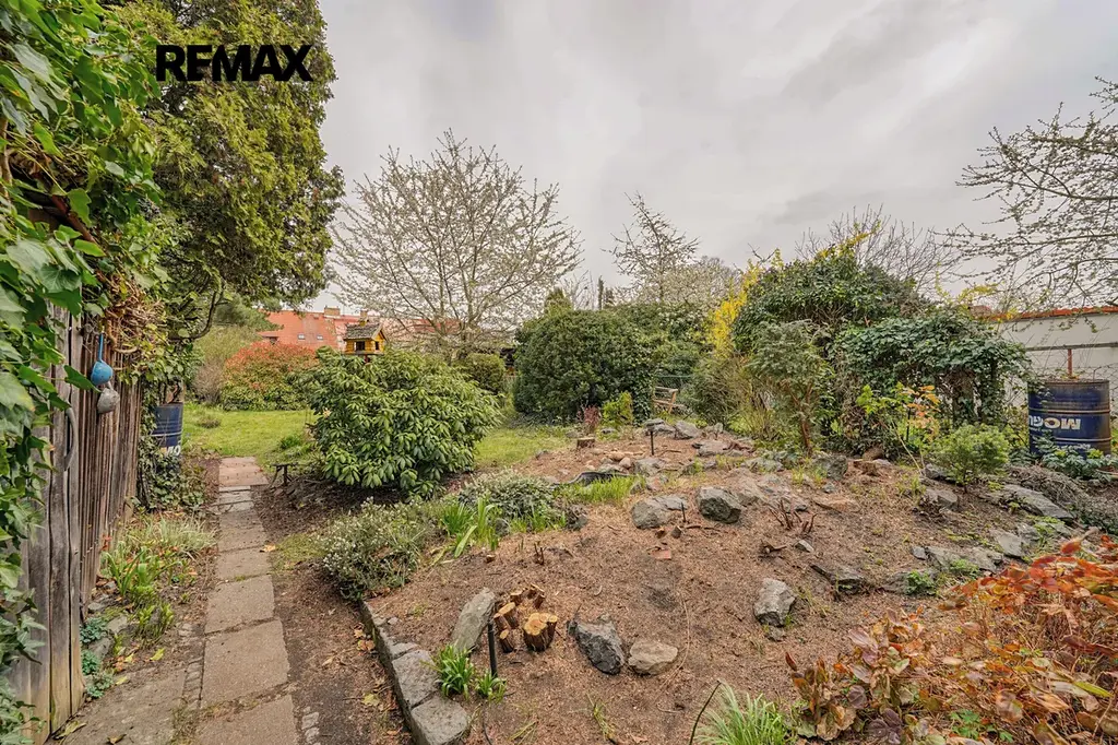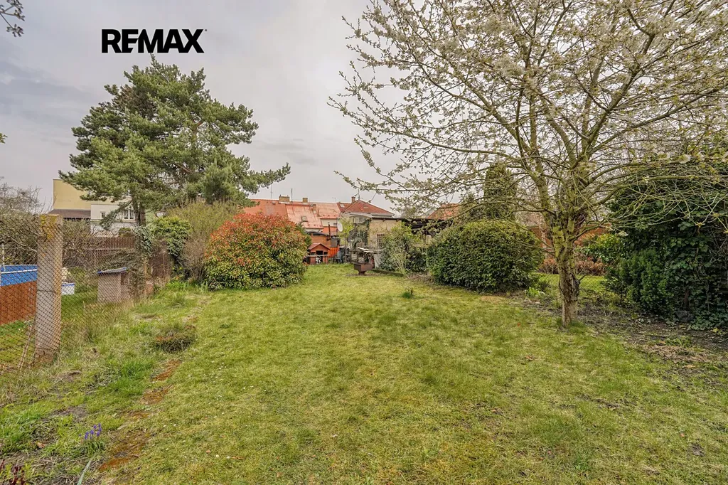 Za domem je k dispozici příjemná zahrada o výměře 299 m², která poskytuje dostatek soukromí i prostoru k odpočinku. Velkou výhodou je také lokalita – veškerá občanská vybavenost je v bezprostředním okolí, základní škola v docházkové vzdálenosti a zastávka tramvaje jen pár kroků od domu. Parkování je možné přímo před nemovitostí na obecním pozemku.
