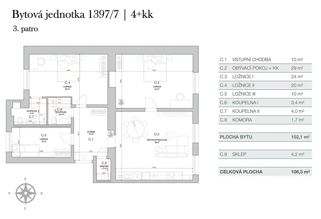 Dispozice bytu 4+kk: