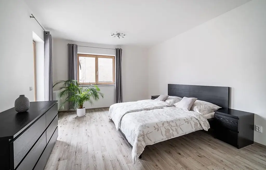 K dlouhodobému pronájmu nabízíme zařízený byt 3+kk s lodžií a garážovým parkovacím stáním v historickém centru města Plzně, ulice Veleslavínova. Prostorná bytová jednotka je situována do 4. nadzemního podlaží (z celkových 5) energeticky velmi úsporné novostavby (třída B) a je členěn na prostornou chodbu, ze které se jednotlivě vstupuje do všech částí, a to do obývacího pokoje s kuchyňským koutem, ložnice, druhého pokoje, předsíně, koupelny (s vanou a sprchovým koutem zároveň) a na oddělenou toaletu. Lodžie, situována do klidného vnitrobloku, je přístupná z ložnice a druhého pokoje současně. Byt je zařízený moderní kuchyňskou linkou s vestavnou elektrickou troubou, sklokeramickou varnou deskou, digestoří, myčkou nádobí, ledničkou s mrazákem, dále jídelním stolem se čtyřmi židlemi, pohovkou, konferenčním stolem, TV stolem, závěsnými skříňkami, pračkou, dvojlůžkem (z hygienických důvodů ovšem bez matrací), dvěma nočními stolky, komodou, šatní skříní v ložnici a na předsíni. Vytápění je ústřední (Plzeňská teplárenská), totéž dodávka teplé vody. Na vše jsou samostatná měřidla. K bytu náleží a součástí ceny nájemného je již zmiňované garážové parkovací stání a sklep. Zajímavá poloha nemovitosti v samém centru města nabízí veškerou občanskou vybavenost, výbornou dostupnost MHD i rychlé napojení na páteřní městské komunikace.