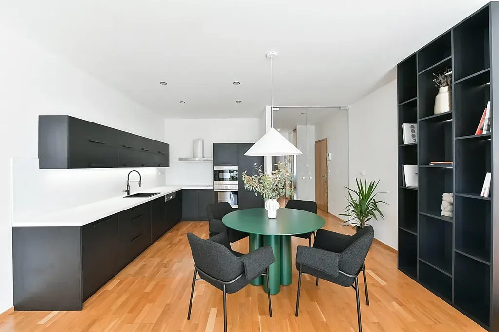 Tento plně zařízený designový byt k pronájmu s terasou a společnou předzahrádkou se nachází v přízemí moderního a bezpečného rezidenčního komplexu Korunní dvůr s velkým dvorem s parkovou úpravou. Atraktivní lokalita nabízí širokou občanskou vybavenost a perfektní dostupnost. Kousek od budovy je tramvajová zastávka s rychlou dostupností do centra města (cca 10 minut). Stanice metra Flora (trasa A) a nákupní a zábavní centrum Flora jsou v docházkové vzdálenosti. Komplex sousedí s vilovou čtvrtí z 30. let 20. století s mnoha architektonickými skvosty.
