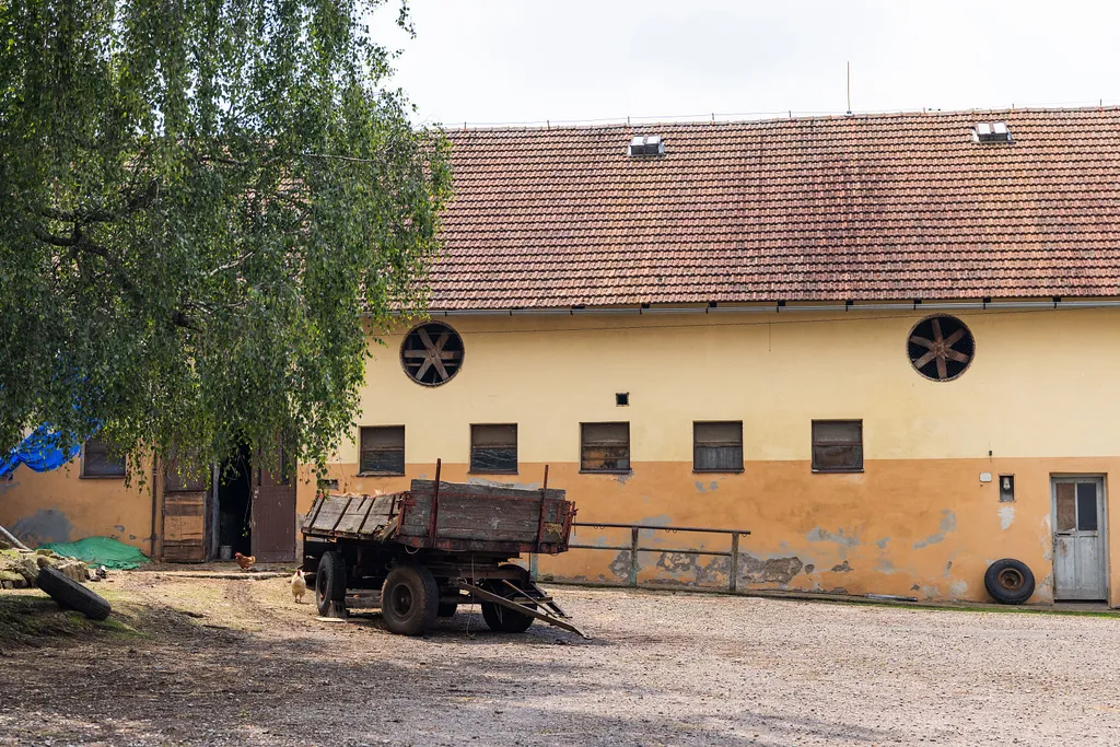 Dále tu najdeme sklady, velké garáže pro traktory a techniku, nad nimi další půdní prostory, starou kovárnu a dílnu (ta je také pronajatá a generuje zisk).