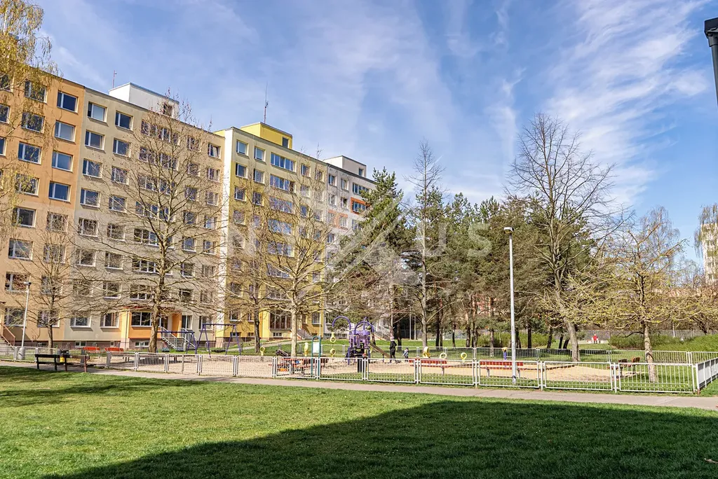 Rodinný byt 3 + 1, 70 m2, s lodžií 7 m2 a sklepem 1,5 m2 leží v 2. podlaží zatepleného panelového domu, který je situován u parku se vzrostlými stromy a leží pět minut pěšky od stanice metra Stodůlky.