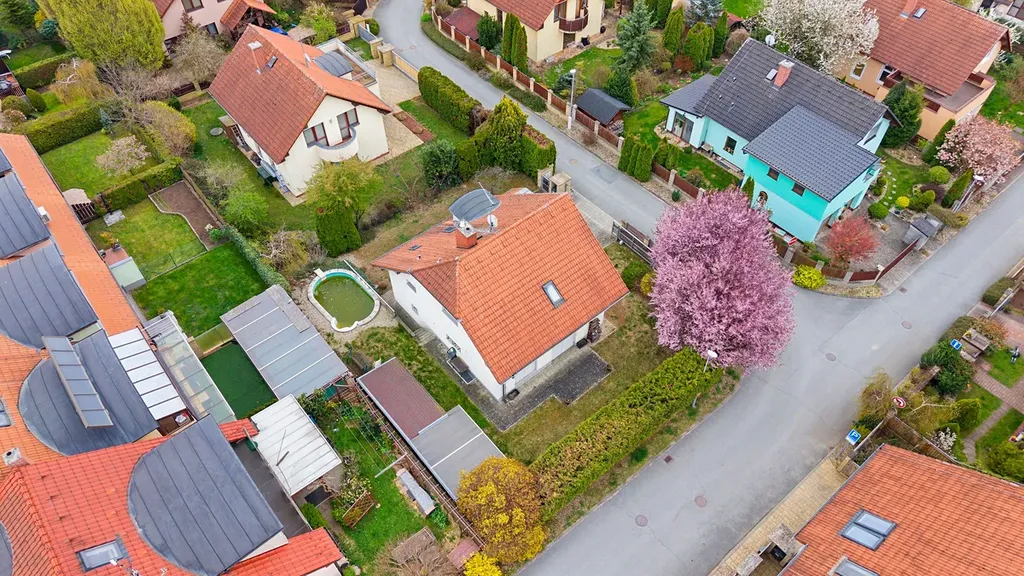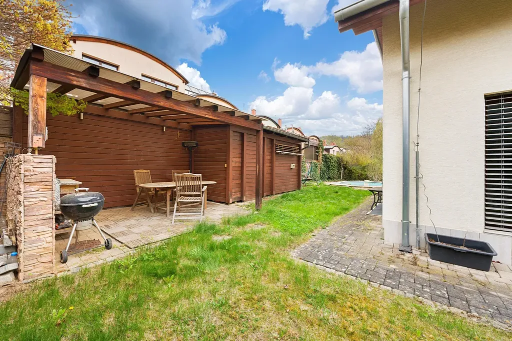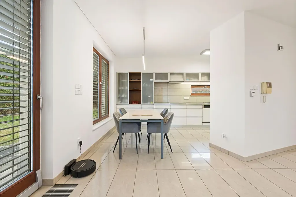 Celková podlahová plocha domu je cca. 147 m² s dispozicí 4+kk, což umožňuje pohodlné bydlení i pro rodinu s dětmi. Zahrada poskytuje dostatečné soukromí a prostor pro odpočinek.
