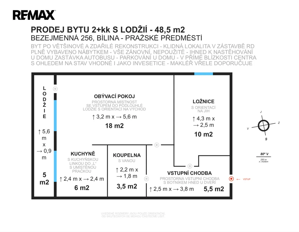 Byt je situován ve vyšším patře, což zajišťuje dostatek světla, klid a pěkný výhled do okolní vilové zástavby. Dispozice 2+kk je praktická a vhodná jak pro pár či menší rodinu.