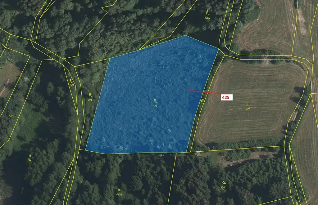Lesní pozemek o výměře 7499 m2, parcelní číslo 425, podíl 1/1, katastrální území Strmilov, obec Strmilov, obec s rozšířenou působností Jindřichův Hradec, okres Jindřichův Hradec, Jihočeský kraj.