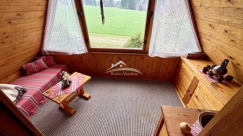 V přízemí najdete předsíň, kuchyňský kout a útulný obývací pokoj s krbem, který bez problémů vytopí celý objekt a dotváří příjemnou atmosféru. V podkroví se nachází ložnice a samostatná relaxační místnost s krásným výhledem do okolní přírody.