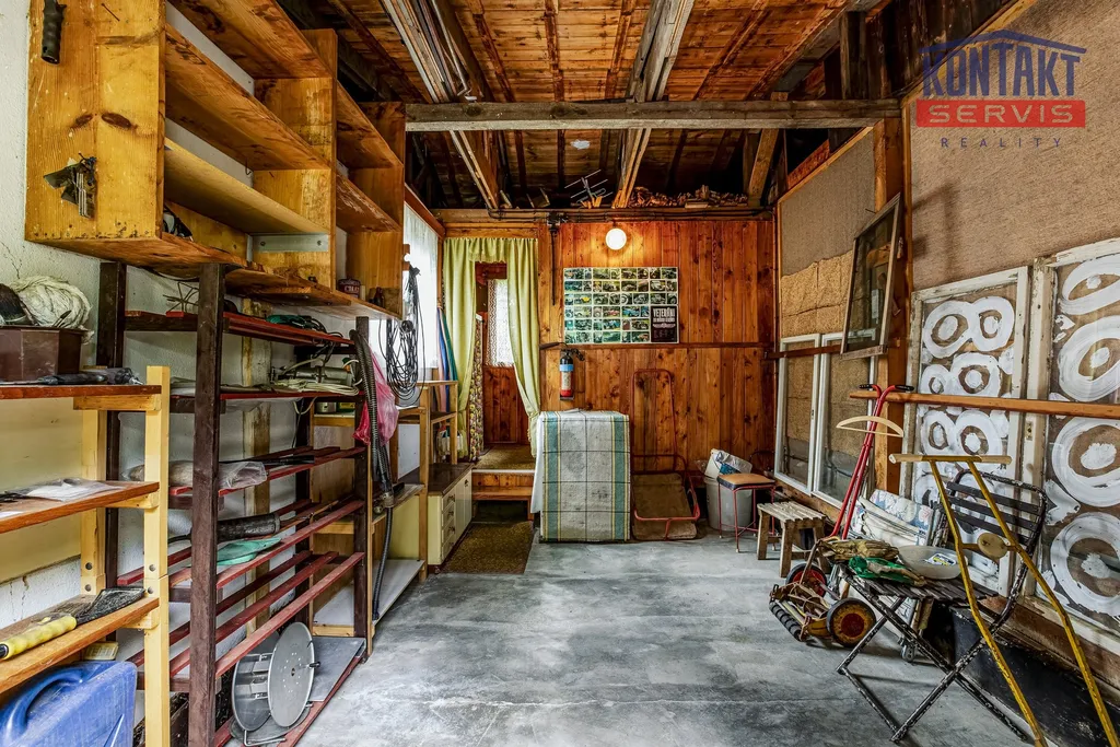 Původní veranda byla dříve uzavřena a dnes tvoří jednu z obytných místností, pod verandou se navíc nachází malý, praktický sklep vhodný na uskladnění.