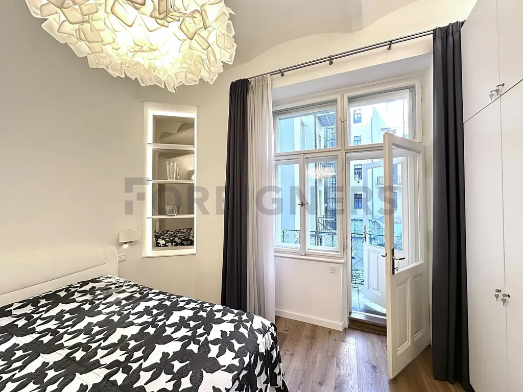 Byt zaujme především velkorysým obytným prostorem s jídelní částí o přibližné ploše 40 m², který díky vysokým stropům a dostatku denního světla působí mimořádně vzdušně a příjemně. Samostatná ložnice nabízí přímý vstup na balkon orientovaný do klidného vnitrobloku. Kuchyň je prakticky řešena v rámci vstupní části bytu a je plně vybavena spotřebiči i nádobím. K dispozici je také koupelna se sprchovým koutem a toaletou. Velkou výhodou bytu jsou dvě oddělené komory, z nichž jedna slouží jako technické zázemí s pračkou a druhá jako praktický úložný prostor pro domácí potřeby.