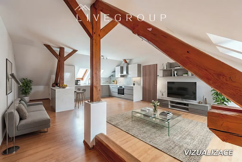 Exkluzivně nabízíme prostorný a světlý byt 3+kk o výměře 93 m2 s nadstandartním sklepem 14 m2 v bytovém domě zkolaudovaném v roce 1960. Tento půdní byt byl zhotoven v roce 1992 a dům prošel kompletní revitalizací v roce 2020 (nová střecha, fasáda, kompletně nové zateplení, okna, společné vnitřní prostory).