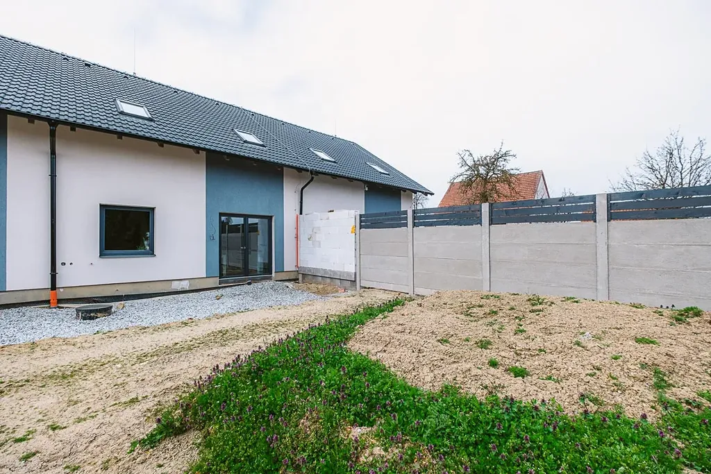 Jedná se o cihlovou novostavba, která byla zkolaudována v roce 2025 a užívána stávajícími majiteli od listopadu 2025. Řadový dům disponuje čtyřmi pokoji a je navržen s důrazem na komfort a praktičnost. Vytápění domu zajišťuje plynový kotel(radiátory), okna jsou trojskla. Dům je napojen na svoji čističku a zdrojem vody je nyní studna (od červena 2026 bude zhotovena i přípojka na veřejný vodovod). Podlahy v době jsou plovoucí + dlažba. Přestože je okolní zástavba venkovská, dopravní dostupnost je skvělá díky blízkosti vlakové stanice a četnosti autobusových spojů. Na pozemku před modem lze zrealizovat parkování až pro dvě auta. Energetická třída domu je C.
