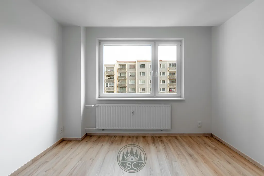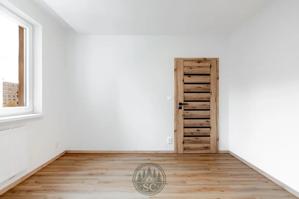 V bytě byly provedeny nové rozvody elektřiny i vody, proběhla kompletní nivelace podlah a následná pokládka vinylu se zvýšenou mechanickou odolností. Součástí je také jídelní stůl z masivu, designové osvětlení v podobě zavěšených kouřových svítidel a televizní stěna.