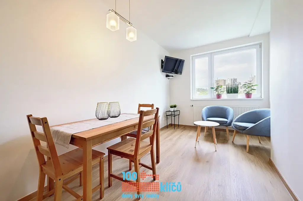 Realitní kancelář 100klíčů vám nabízí pohodový byt o dispozici 1+1 v osobním vlastnictví v moderní budově z roku 2008 v Praze - Modřanech.