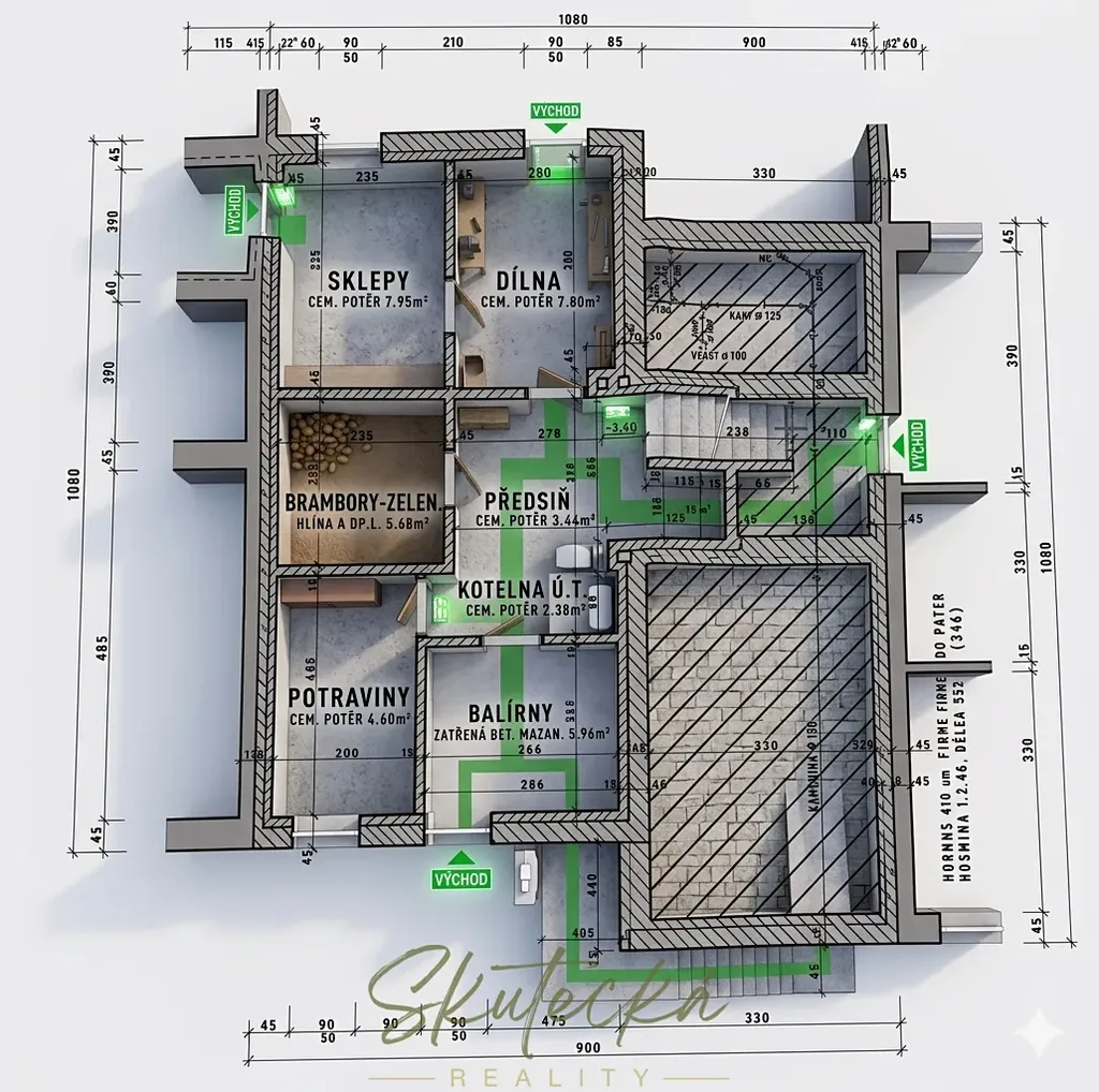 Dispozice a vybavení - dům nabízí dispozici 5+1 rozloženou do dvou nadzemních podlaží. Každé podlaží lze využívat samostatně, což dává prostor jak pro vícegenerační bydlení, tak například kombinaci vlastního bydlení a pronájmu. Součástí domu je také sklep se čtyřmi místnostmi, který lze využít jako dílnu, sklad nebo hobby prostor. Nemovitost je v dobrém technickém stavu a umožňuje okamžité užívání bez nutnosti zásadních úprav.