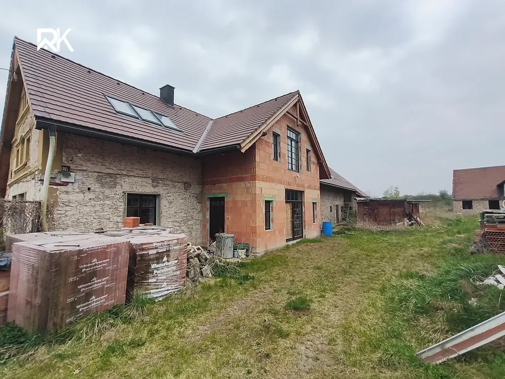 Na pozemku se dále nachází prostorná stodola, výměnek (samostatná obytná jednotka), dílna a sklep. Velkou přidanou hodnotou je také pečlivě uskladněný stavební materiál vysoké kvality (střešní tašky, cihly, izolace aj.), který umožňuje budoucímu majiteli plynule navázat na další úpravy bez nutnosti okamžitých investic.
