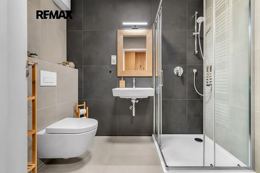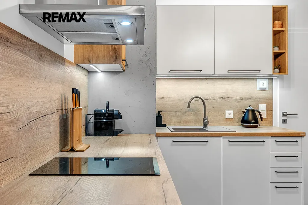 Interiér je řešen velmi prakticky a zároveň stylově – k dispozici je vstupní předsíň s vestavěnou skříní a dřevěnou šatní stěnou, moderní koupelna se sprchovým koutem a toaletou a hlavní obytný prostor propojující obývací část, ložnici a kuchyňský kout. Samozřejmostí je kompletní vybavení, díky kterému je apartmán připraven k okamžitému užívání i pronájmu.