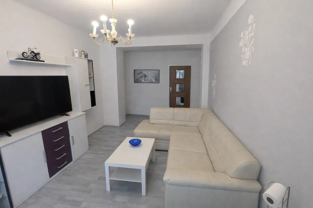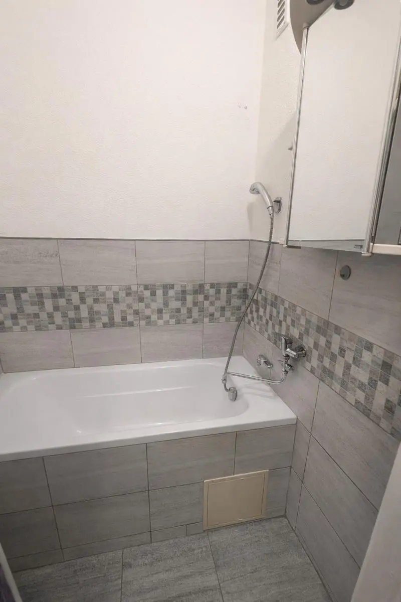 Kuchyň je vybavena hezkou kuchyňskou linkou a elektrickým sporákem. V koupelně je vana a skříňka se zrcadlem, WC odděleno.. Všechny místnosti jsou světlé a vzdušné.