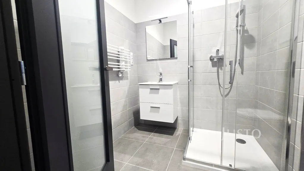 Vybavení bytu, postel, šatní skříň, konferenční stolek, televize, stůl, židle. Díky vybavení a dispozici je ideální pro jednotlivce, kteří hledají komfortní a moderní bydlení bez nutnosti dalších investic.