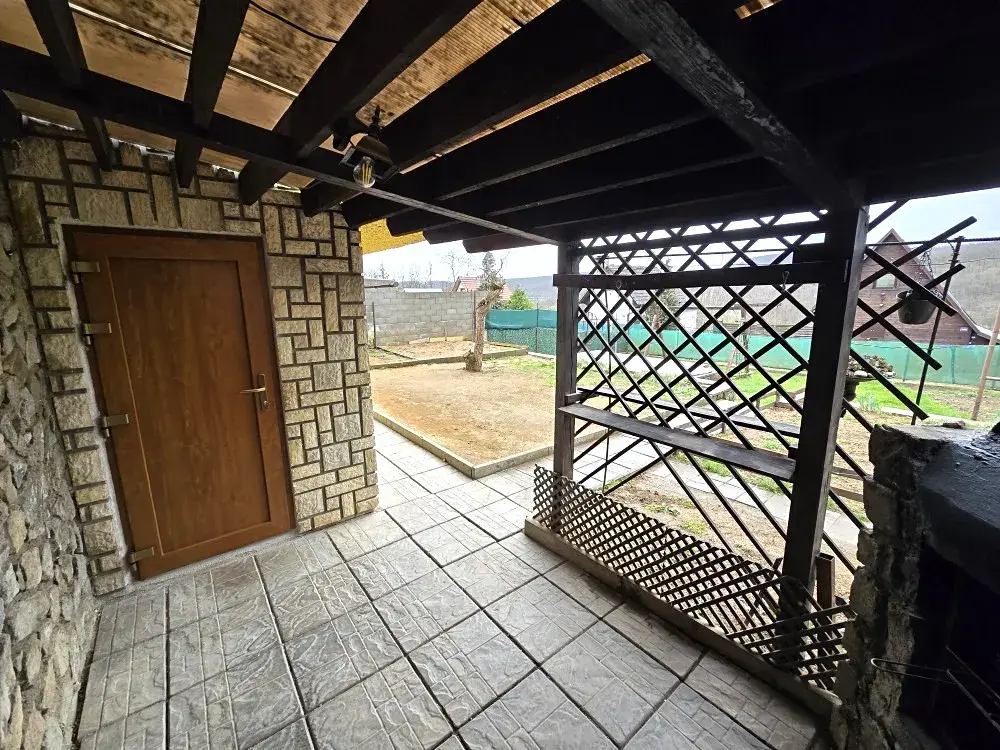 Chata stojí na vlastním pozemku o výměře 381 m2, z čehož činí 50 m2 zastavěná plocha. Objekt je zděný, disponuje třemi nadzemními podlažími a je ve výborném stavu. V přízemí se nachází kuchyň a koupelna s WC. V patře obývací prostor krbovými kamny. V podkroví je pak ložnice. U vchodu je k dispozici zastřešená pergola s venkovním krbem. Na chatu navazuje technická místnost s hlavním uzávěrem vody a sklad. Dále je zde také dřevník.