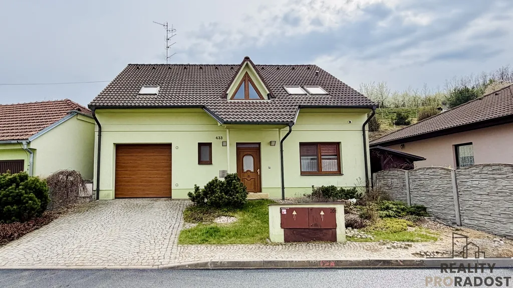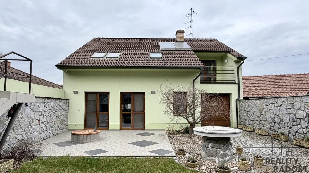 Dům je dispozičně řešen do dvou podlaží. V přízemí se nachází denní část domu s prostorným obývacím pokojem s kuchyňským koutem a jídelnou se vstupem na terasu, dále technická místnost, komora, samostatné WC, zádveří, hala se schodištěm a vstupem do garáže. Podkroví tvoří klidová zóna se třemi ložnicemi, pracovnou, šatnou, koupelnou, WC a chodbou. Na pozemku se nachází venkovní gril, udírna a hospodářský sklep. K dispozici je dvůr s terasou a zahrada, která nabízí klid, soukromí a relaxaci. Pozemek má celkovou výměru 529 m², zastavěná plocha domu činí 124 m², podlahová plocha činí 149 m². Vytápění a ohřev vody domu zajišťuje plynový kotel a solární panely na ohřev vody. V domě je částečně podlahové topení a radiátory. Internet - optika. K dispozici je vlastní kopaná studna.