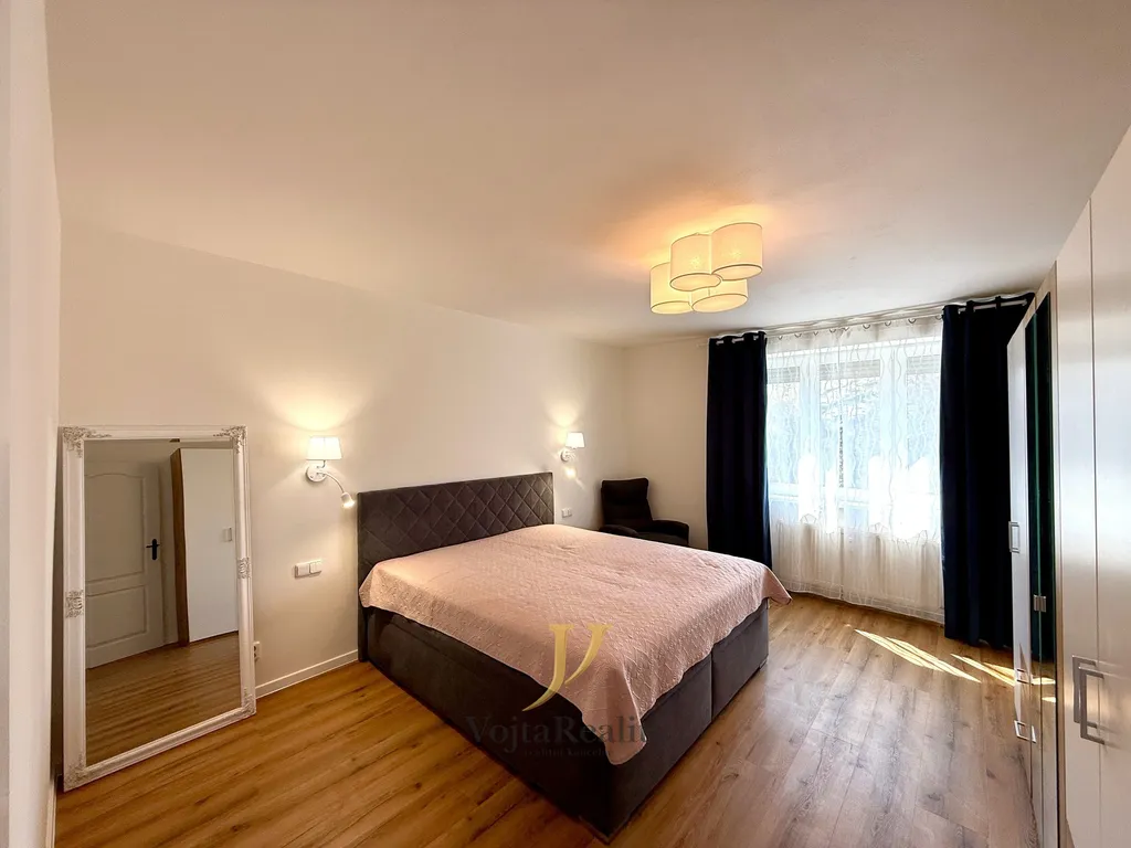 Byt o celkové výměře 86 m² vyniká svou prostorností a praktickým uspořádáním. Dispozice zahrnuje vstupní chodbu s dostatkem úložného prostoru, samostatnou toaletu a koupelnu vybavenou sprchovým koutem. Srdcem bytu je obývací pokoj, ze kterého se vstupuje do ložnice s přímým vstupem na balkon o velikosti 7 m². K dispozici je dále další samostatný pokoj a kuchyně se spižírnou. Kuchyňská linka je plně vybavena vestavěnými spotřebiči, konkrétně plynovým sporákem, myčkou nádobí a elektrickou troubou.