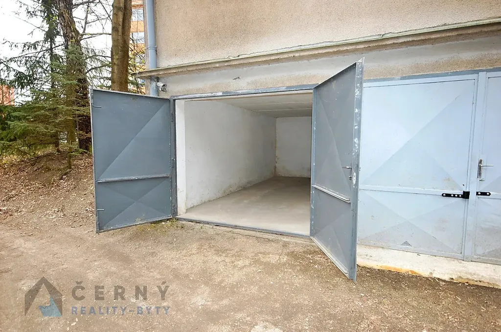 Garáž je ve velmi dobrém stavu - čistá, udržovaná a připravená k okamžitému využití. Vybavena je dvoukřídlými vraty a napojena na elektrickou energii (měsíční poplatek 250 Kč), což výrazně zvyšuje její praktické využití nejen pro parkování, ale i jako zázemí pro drobnou dílnu či sklad.