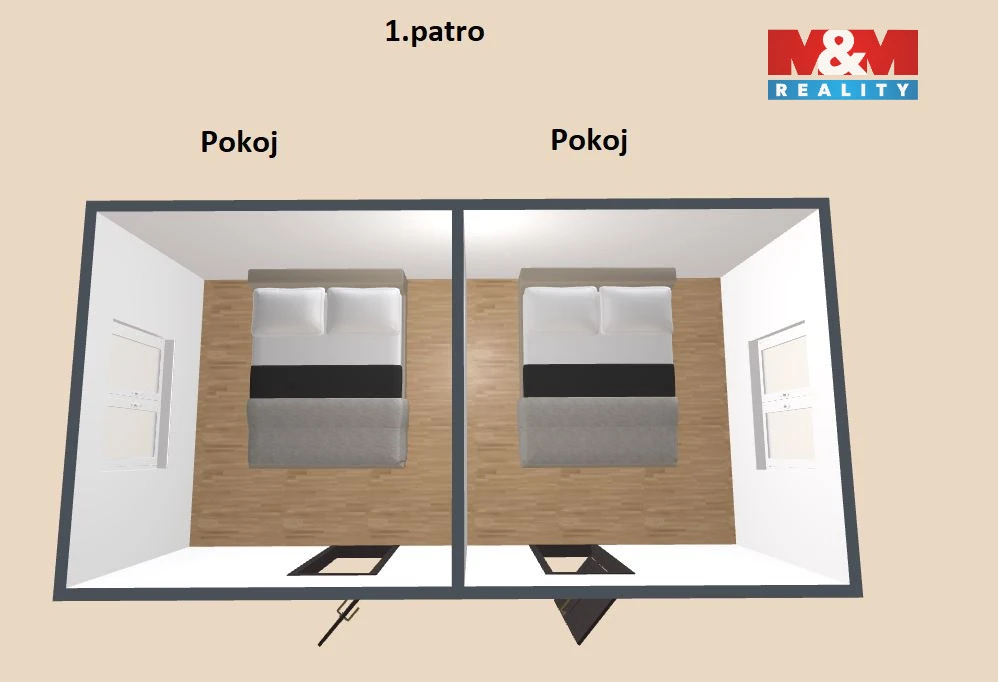 Chata o užitné ploše 70 m² stojí na pozemku o velikosti 446 m² a nabízí praktické dispoziční řešení pro pohodlnou rekreaci. V přízemí se nachází prostorná hlavní místnost přes celou plochu, která slouží jako obývací i společenský prostor. V patře jsou k dispozici dvě menší ložnice, ideální pro rodinu či hosty. Součástí je také sklep (suterén), vhodný pro uskladnění potravin nebo sportovního vybavení.