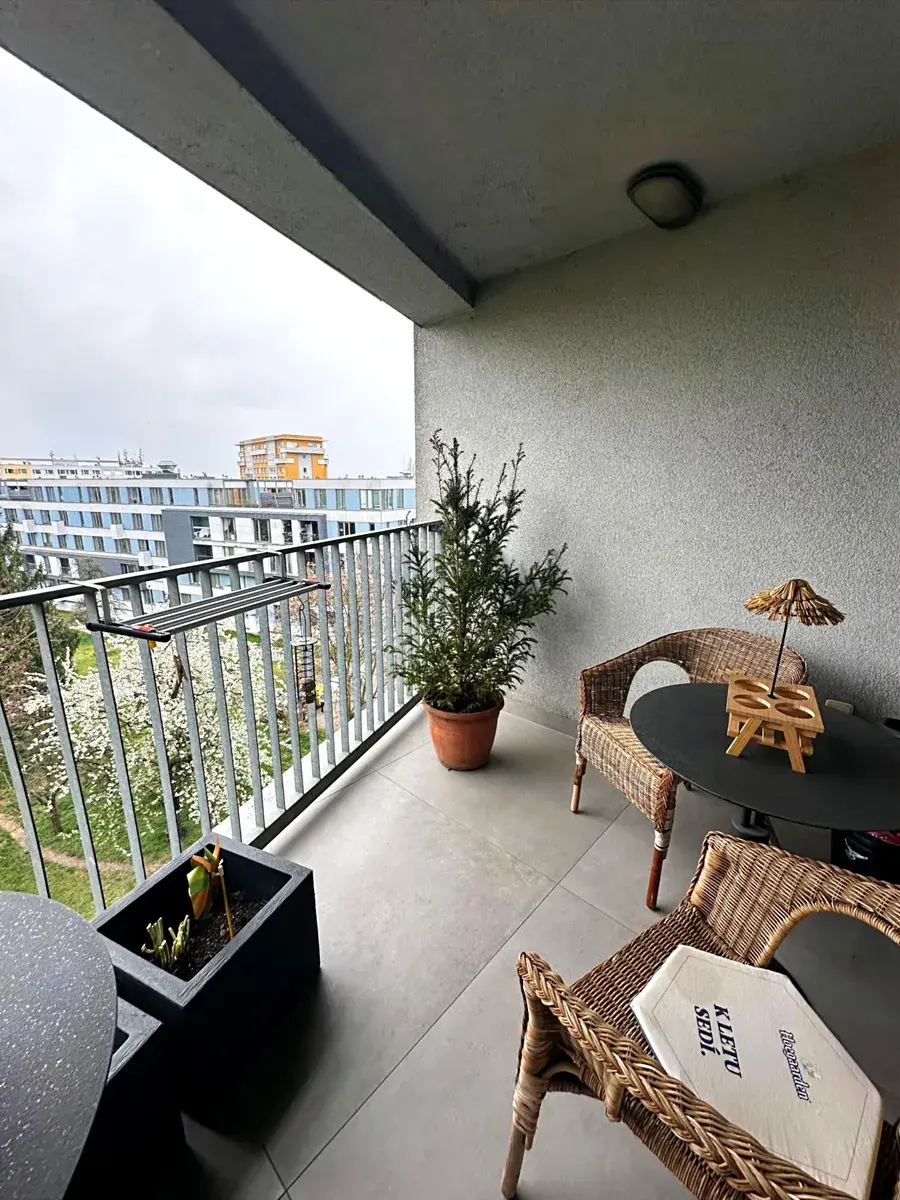 Veškerý nábytek vč. kuchyně je vyroben na míru společností Stylishrooms v prémiové kvalitě a je součástí prodeje. Byt je připraven k okamžitému užívání.