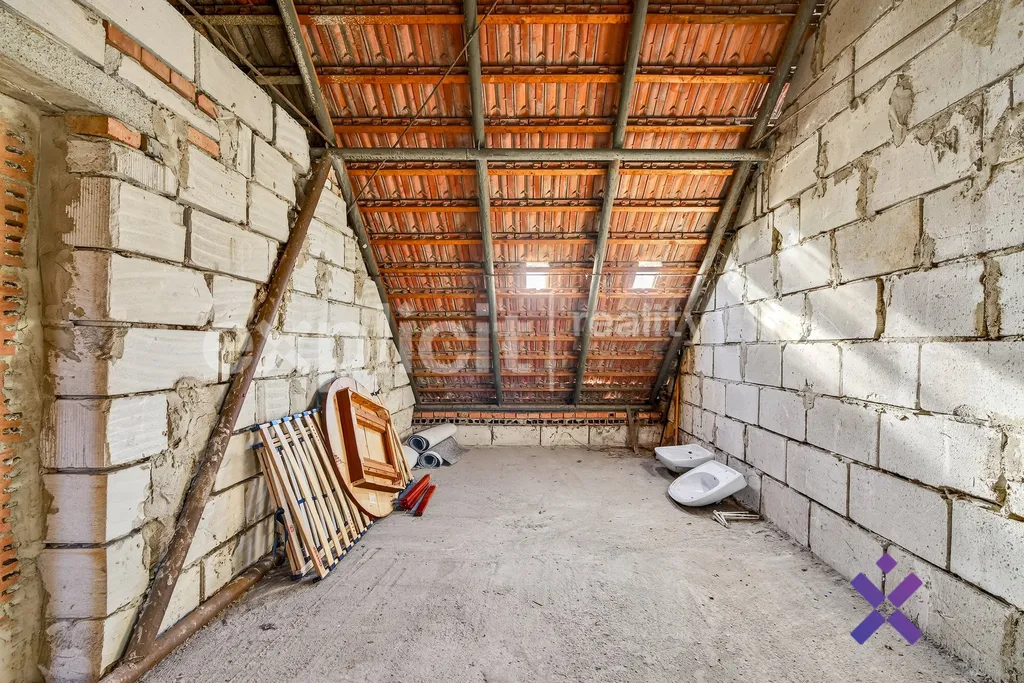 Dispozice domu odpovídá 6+1. V přízemí se nachází čtyři obytné místnosti, kuchyně a sociální zázemí. Z obývacího pokoje vede vstup na balkon orientovaný do ulice. Podkroví tvoří dvě další obytné místnosti a navazující půdní prostor o velikosti přibližně 45 m² s připravenými rozvody vody a odpadu. Podlahová plocha přízemí činí 102 m², podkroví přibližně 57 m².