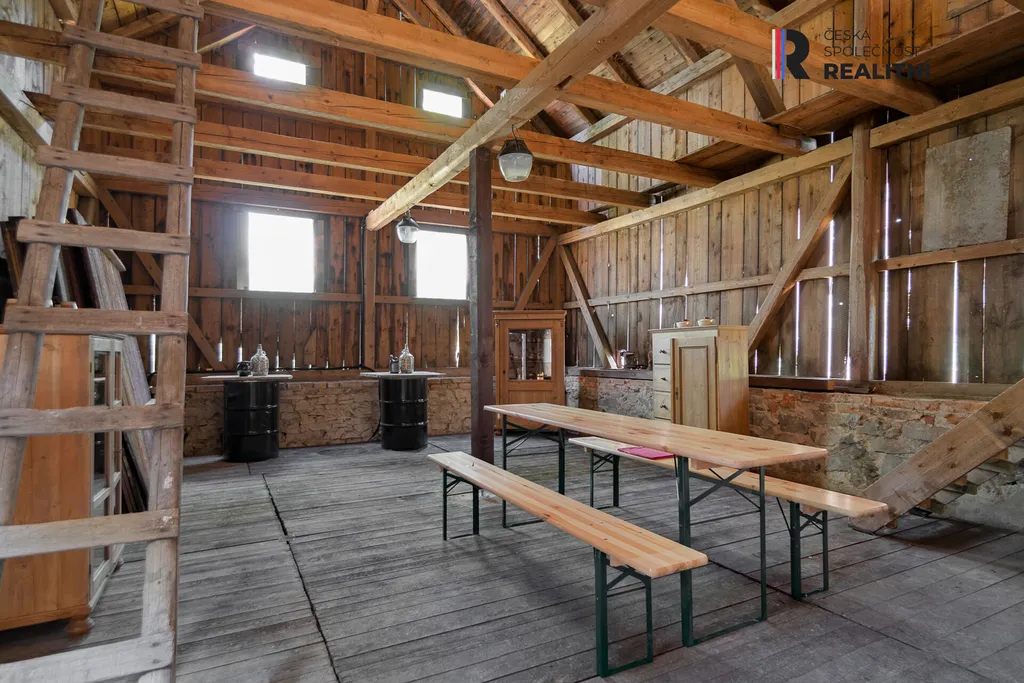 Vedle domu nebo chalupy se nachází stylová stodola (r. 1927), kde je možné kryté posezení v letních měsících. Venkovská stodola (7x11m) je vhodná pro párty a ke společnému trávení volného času, vybavena zahradním nábytkem, výčepem a 2 toaletami s umyvadlem.