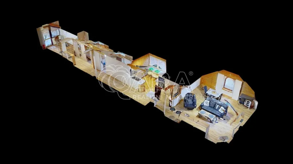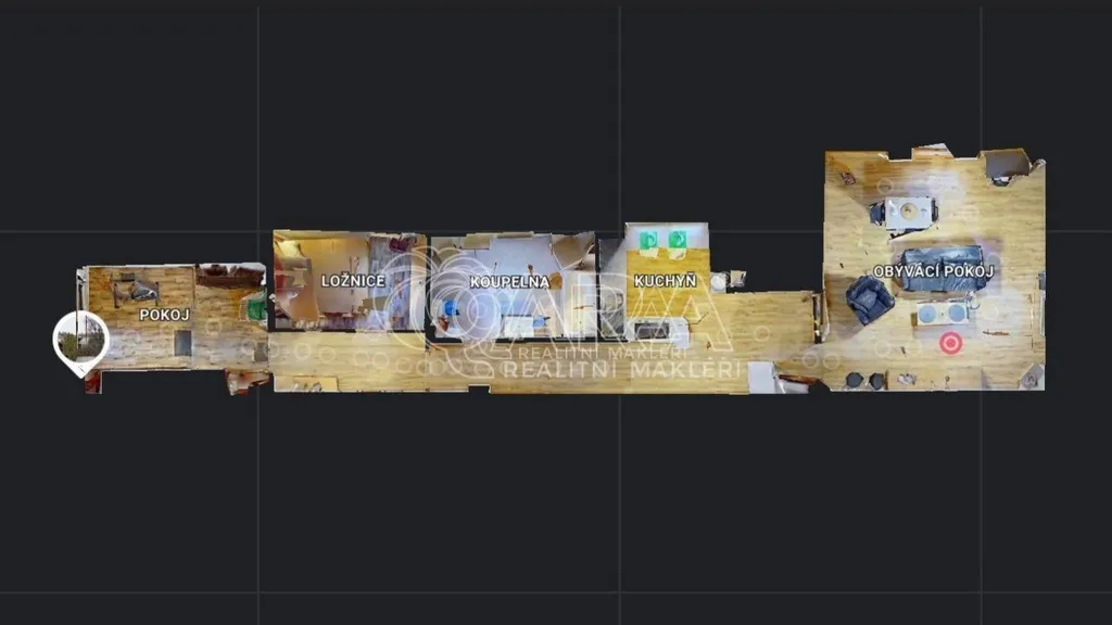 Byt (70 m2) má samostatný vchod z terasy a je připraven k nastěhování. Tvoří ho prostorná místnost (11 m2) s vestavěnou šatní skříní, s možností využití jako pracovna, nebo k různým volnočasovým aktivitám, fitness atd. Dále je zde ložnice s dvojlůžkem (7 m2), koupelna s vanou, WC a pračkou (8 m2), kuchyň (13 m2) vybavená chladničkou, indukční varnou deskou, pečící a mikrovlnnou troubou, s možností připojení myčky nádobí, a obývací pokoj (24 m2).