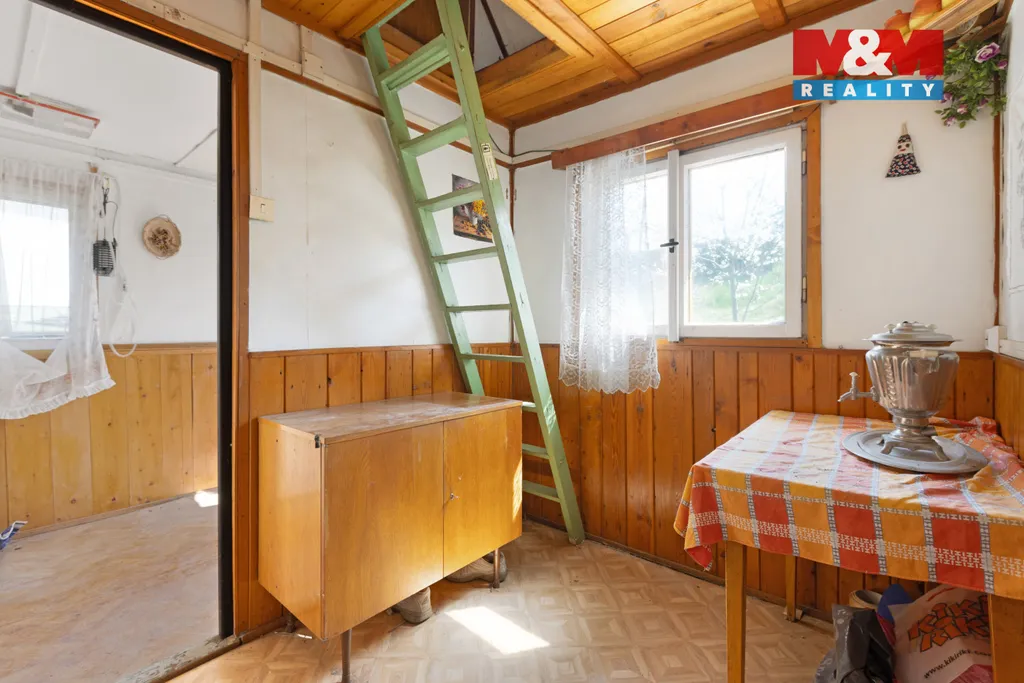 K prodeji montovaná (dřevěná) chata na zděném základu, která je umístěna na vlastním pozemku o celkové výměře 550 m2. Na pozemek je přiveden nový přívod elektřiny (momentálně odpojen elektroměr), užitková voda svedena do podzemní nádrže, vrtaná studna se zásobníky na vodu. V chatě není vybudované sociální zázemí a je spíše určena k demolici montované části a k nové výstavbě většího objektu, případně ke kompletní rekonstrukci. Svažitý, kaskádovitý pozemek. Příjezd autem je možný k horní i spodní části pozemku, na obou stranách je vybudovaná plocha na parkování na vlastním pozemku. Zděné podlaží disponuje technickými místnostmi (19 m2), v přízemí je vstupní chodba (veranda), kuchyně a jeden pokoj (27 m2), v podkroví chodba a jedna místnost (15m2) se vstupem na terasu. Veškerá vybavenost v Loděnici a v Rudné, stejně tak jako nájezd na dálnici D5.