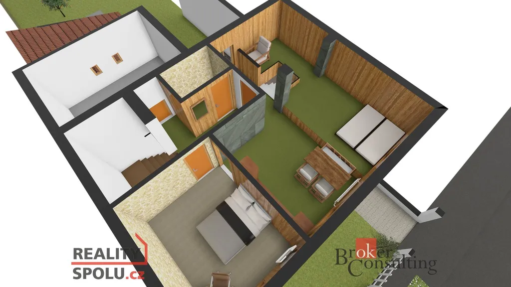 Součástí domu je také prostorný sklep o rozměru 20 m2.