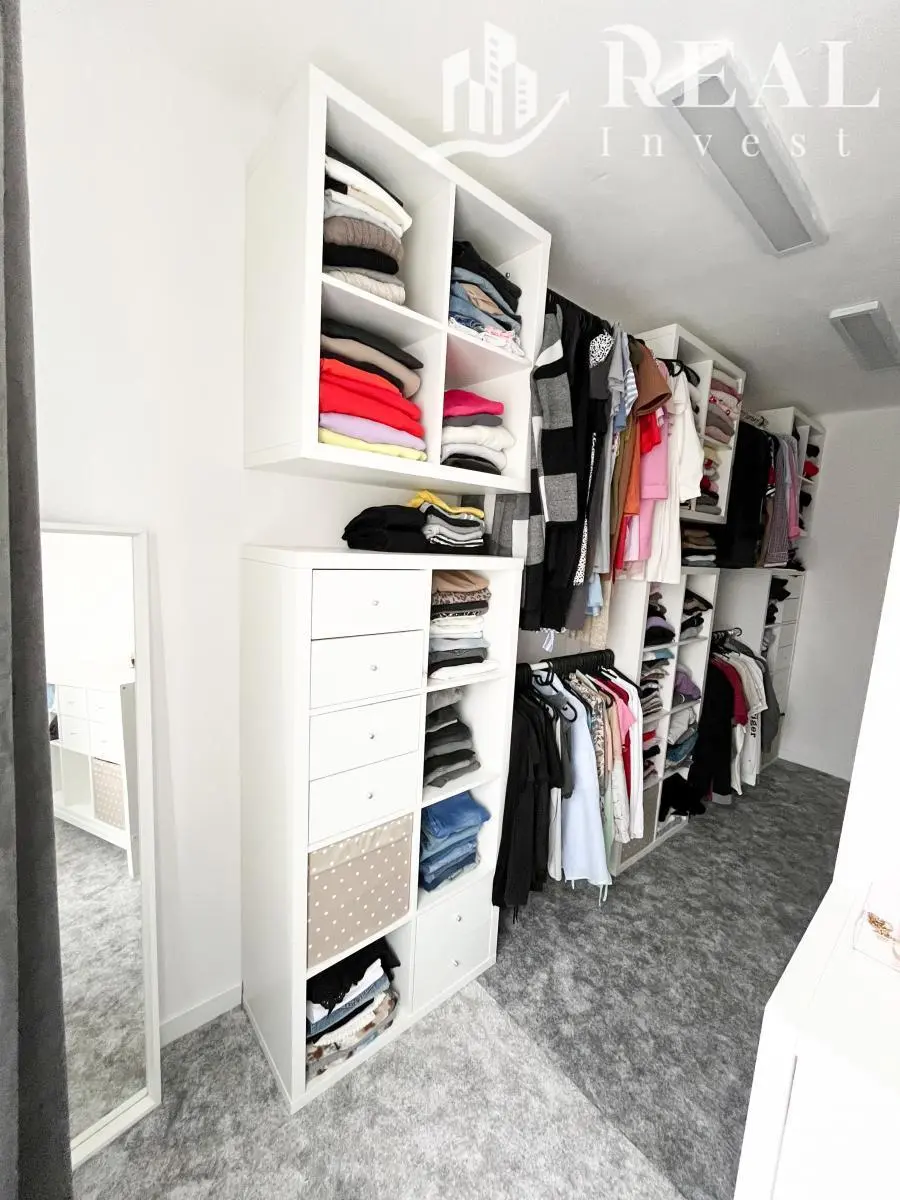 Součástí prodeje je pozemek o velikosti 603 m, garáž, venkovní parkování a prostorný sklep (100 m). Dům je kompletně vybavený, včetně vestavného nábytku, klimatizace, krbu, chytrého osvětlení a kamerového systému.