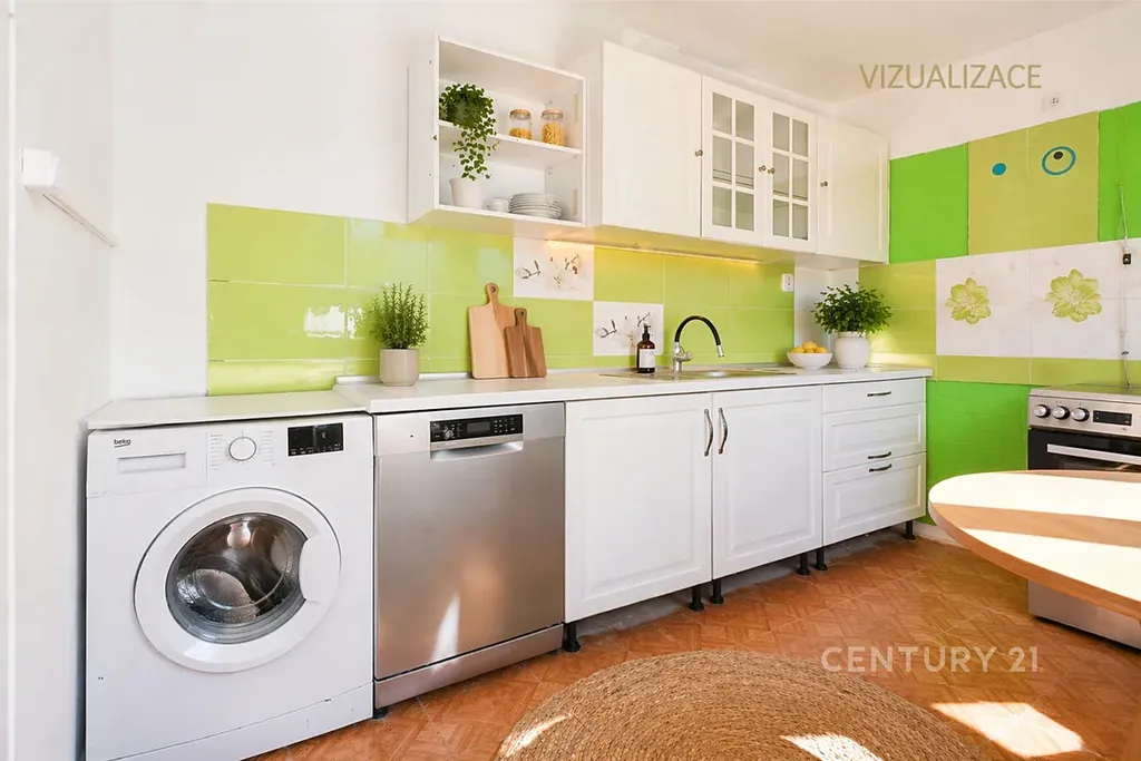 • V kuchyni se nachází kuchyňská linka s elektrickým sporákem, stůl a židle
