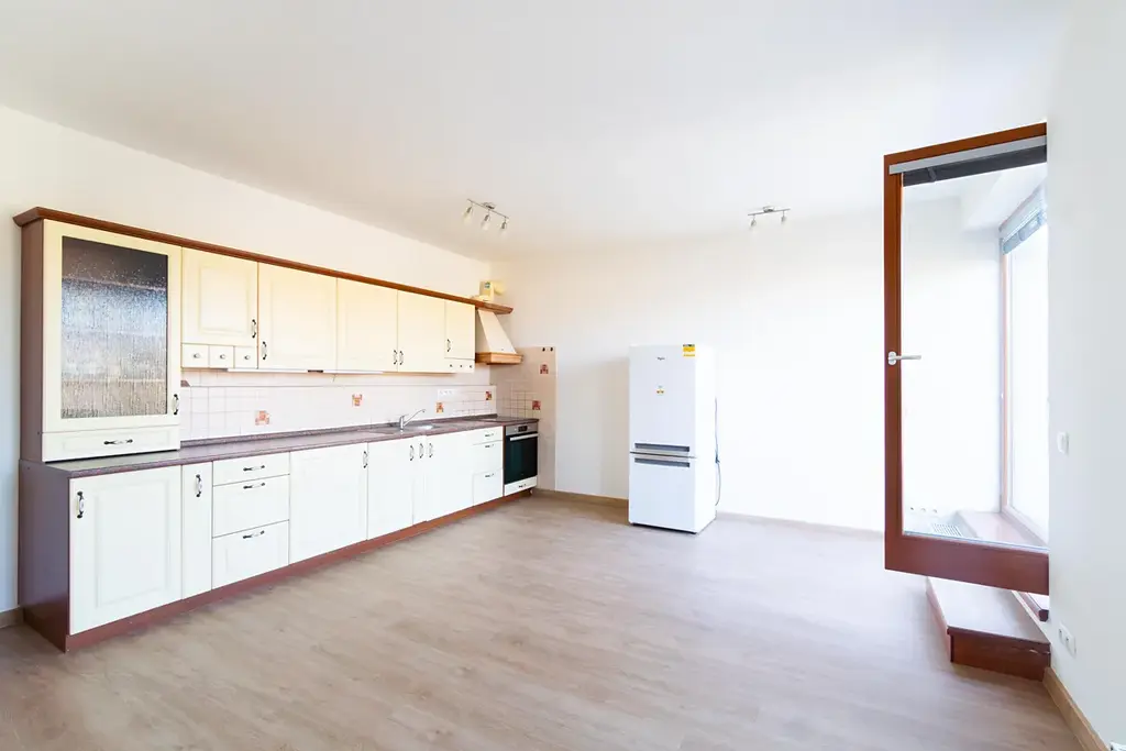 Kuchyňská linka je velkorysá a nabízí spolu s obytnou částí pohodlné a moderní bydlení a přímý vstup na terasu zve ke snídani venku.