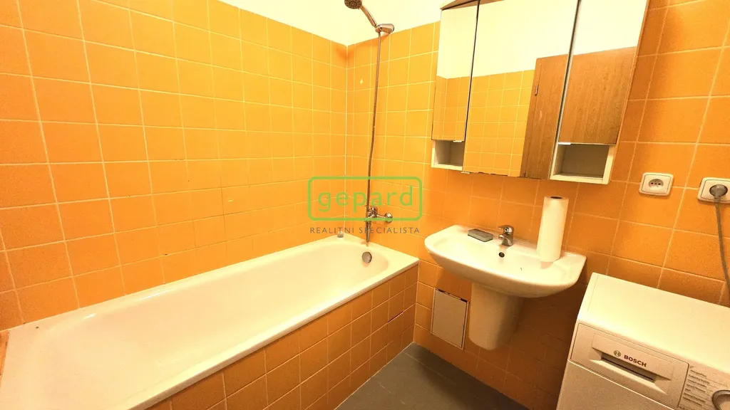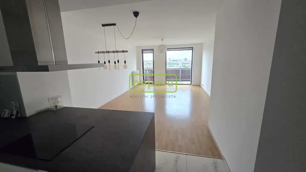 Byt se nachází v 9. NP domu a je orientován na jižní a západní stranu, s otevřeným výhledem na panorama Prahy. Z předsíně jsou samostatné vstupy do obývacího pokoje s kuchyňským koutem, ložnice, koupelny, WC a do komory.