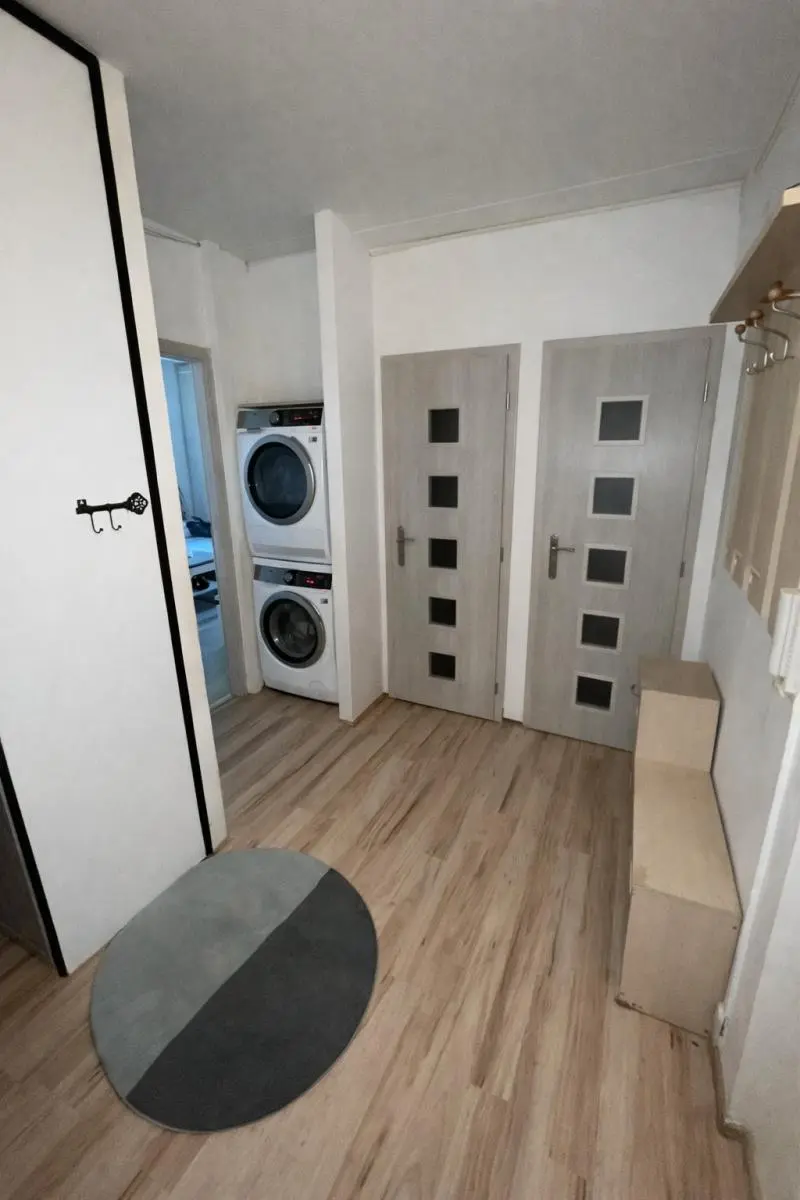 V kuchyni je prostorná kuchyňská linka do tvaru L s elektrickým sporákem a digestoří. Koupelna je obložena moderními obklady, vybavena vanou a umyvadlovou skříňkou se zrcadlem, WC odděleno. Praktický prostor pro pračku a sušičku připraven v chodbě.