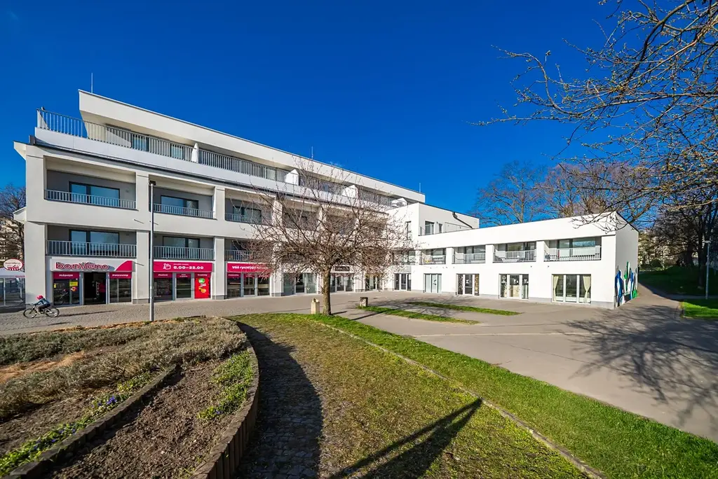 Byt se nachází ve 3. patře menšího projektu (samozřejmě s výtahem), který nabízí nečekaný komfort přímo v domě i jeho bezprostředním okolí. Stačí sejít dolů a máte po ruce vše, co běžně hledáte jinde: