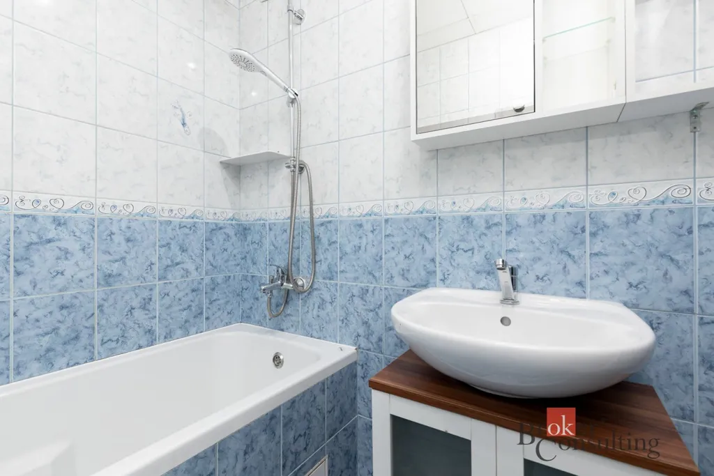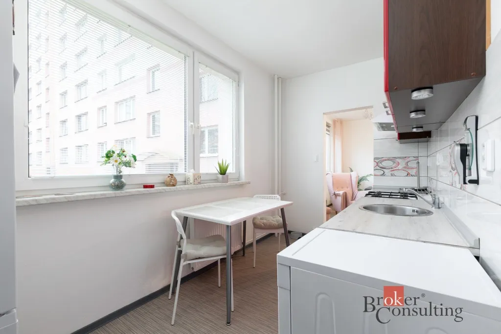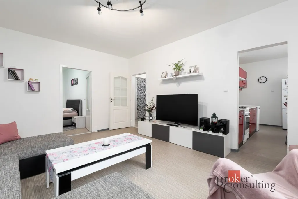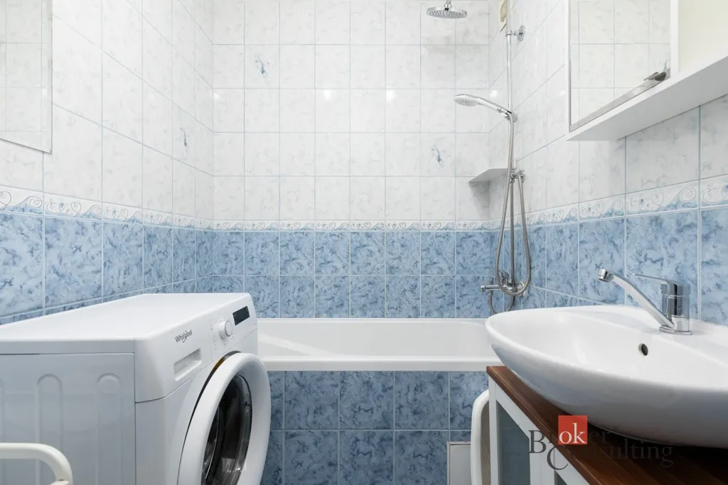 Velkou výhodou je také samostatná koupelna a wc. Byt je velmi světlý prostorný a působí vzdušným a příjemným dojmem.