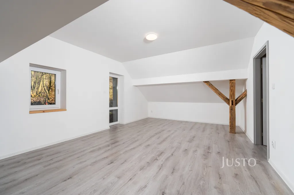 Rodina, přátelé, anebo třeba nájemníci budou bydlet samostatně ve třech velkých podkrovních pokojích. Na patře je navíc ještě toaleta.