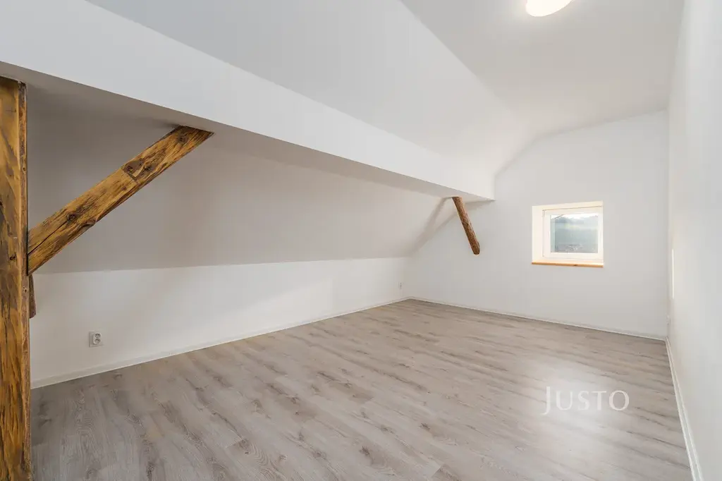 Rodina, přátelé, anebo třeba nájemníci budou bydlet samostatně ve třech velkých podkrovních pokojích. Na patře je navíc ještě toaleta.