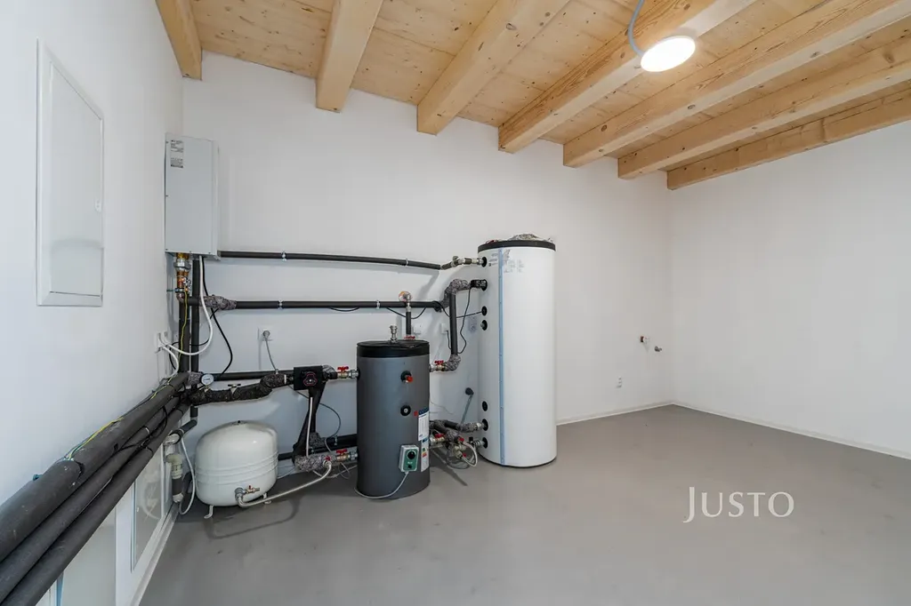 • tepelné čerpadlo „vduch-voda“, 200l akumulační nádrž (možnost ovládání vytápění na dálku přes mobil)