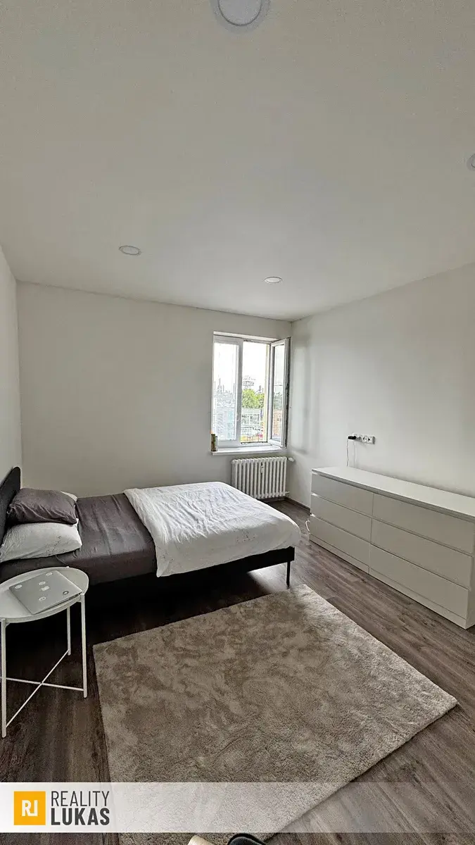• byt je z větší části zařízený - kuchyňský stůl, židle, botník, pračka, lednice, postel, 2x stojan na oblečení, komoda na oblečení, křeslo, odkládací stolek u postele