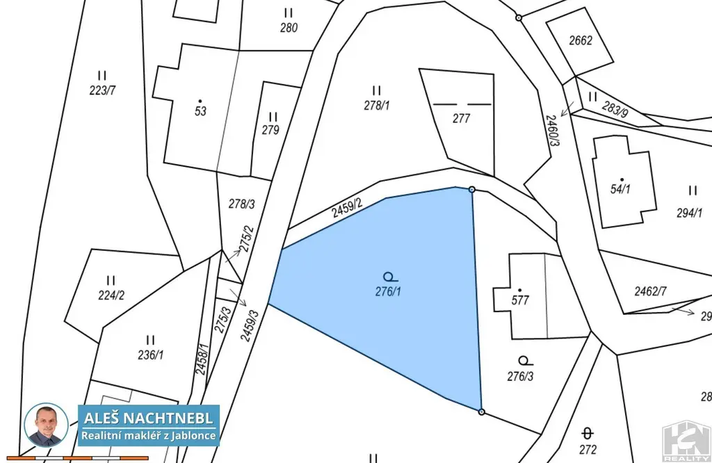 Nabízíme k prodeji zastavitelný stavební pozemek p. č. 276/1 o celkové výměře 948 m and sup2; v obci Albrechtice v Jizerských horách. Pozemek se nachází po pravé straně obecní zpevněné komunikace ve spodní části obce v lokalitě zvané Waberloch.